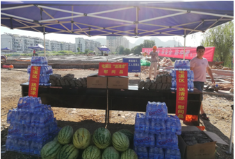 烈日下的八一大橋項目現場一片繁忙景象,工人們有的在支模、有的在焊接鋼筋、有的在澆筑砼,一切都井然有序,忙而不亂。屯溪區區委書記江善良一行一到現場,就將一件件防暑降溫慰問品遞到在施工的工人們手中,并囑咐在高溫下施工的操作人員要多注意休息、及時補充水分和營養,按項目部要求合理安排工作時間,避免中午高溫時間段施工,同時要求項目部積極做好防暑降溫工作,保障施工一線工人的生命安全。充分體現了屯溪區委、區政府等領導對我集團公司的一片深情厚誼和關懷。