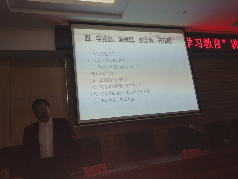 動員結(jié)束后,緊接著由市委黨校楊曉黎教授為我們作了精彩的“黨史學習教育”專題報告。楊教授為我們解讀了中國共產(chǎn)黨由誕生、發(fā)展、壯大到建立新中國,以及帶領(lǐng)全國人民建設(shè)小康社會艱難而輝煌的革命歷程。同時楊教授也結(jié)合自己對黨史的研究體會,以豐富的史實、鮮明的觀點、精辟的語言,向我們闡述了中國共產(chǎn)黨100年艱苦卓絕的風雨歷程,總結(jié)出沒有共產(chǎn)黨就沒有新中國的偉大真理。報告深入淺出、內(nèi)容豐富,對我們加強黨的歷史和思想政治理論學習,進一步提高黨性修養(yǎng),具有很強的理論指導作用。報告很受教育,很受啟發(fā),收獲很大。會議最后,集團總支副書記汪明星要求廣大黨員干部認真學習領(lǐng)會,掌握實質(zhì),以飽滿的工作熱情和扎實的工作作風,認真履行職責,努力工作,為公司的發(fā)展壯大貢獻力量。