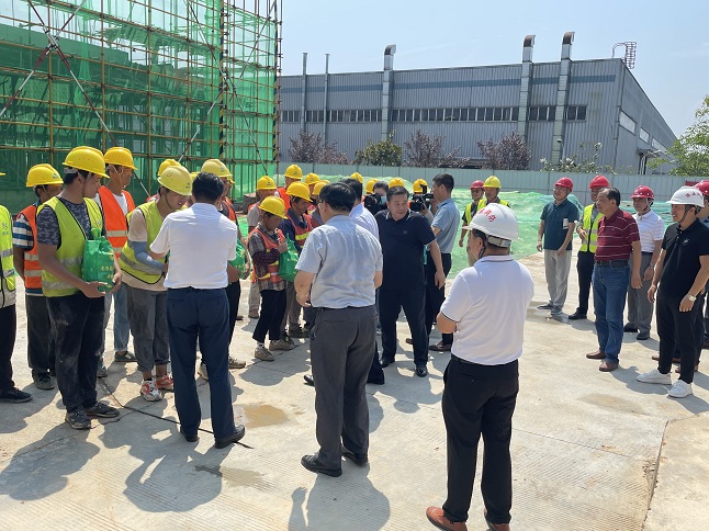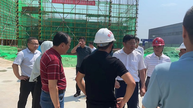 近日,黃山市天氣持續(xù)高溫酷熱,驕陽似火,黃山博盛消防裝備有限公司新廠區(qū)1-2#車間及研發(fā)中心工人仍堅守在施工一線,頂烈日,搶工期。7月26日上午,屯溪區(qū)委書記吳旭光、區(qū)委副書記、區(qū)長楊林,區(qū)人大常委會主任朱學(xué)軍,區(qū)政協(xié)主席袁震宇,區(qū)政協(xié)副主席杜祖紅等一行深入工地現(xiàn)場,開展“送清涼進工地”活動,看望慰問項目部一線職工。