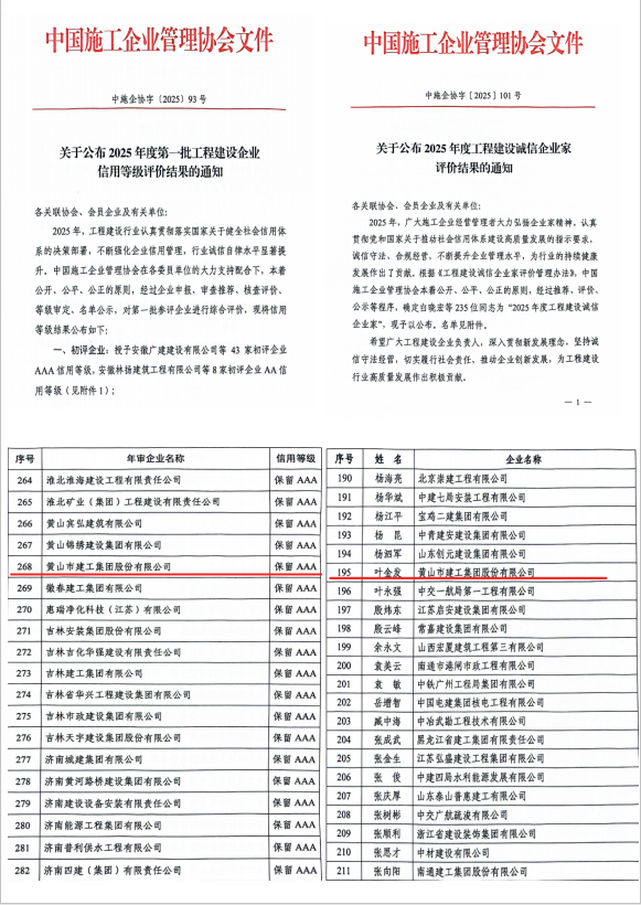 近日,國家及省級行業(yè)協(xié)會相繼公布關于2025年度工程建設領域系列信用評價與先進評選的結果,黃山市建工集團股份有限公司憑借卓越的綜合實力、良好的市場信譽和穩(wěn)健的經營表現,在多個權威評選中脫穎而出,收獲累累碩果,再次彰顯了公司在行業(yè)內的領先地位與誠信標桿形象。